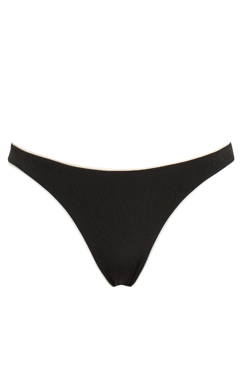 The Eltham bottom in black is a classic slip silhouette, framed with crisp white piping for a subtle graphic finish. Crafted from soft Italian ribbed fabric, it feels effortless on the body, simple, flattering, and endlessly wearable.