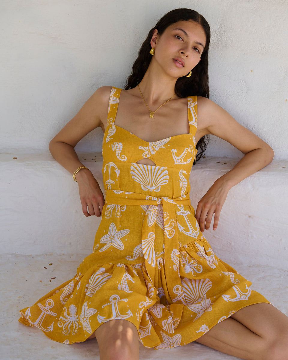 A delicate wavy hem adds texture, while the detachable belt allows for customised definition at the waist. Elegant yet versatile, this luxurious mini dress transitions seamlessly from daytime resort wear to elevated evening styling.