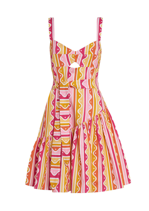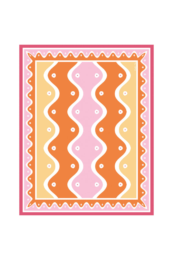 A luxury printed triangle bikini top in Paolita’s exclusive Maiolica print, hand-drawn by founder Anna Paola and inspired by the hand-painted ceramics of Sicily. Fuchsia, saffron and blush in vertical stripes animated by wavy lines and dotted detail. The Semira bikini top is cut from sustainable recycled metallic fabric with a subtle all-over shimmer, adjustable neck and back ties and handmade tassel details on the neck ties. A designer printed bikini top made to mix and match across the Maiolica collection.
