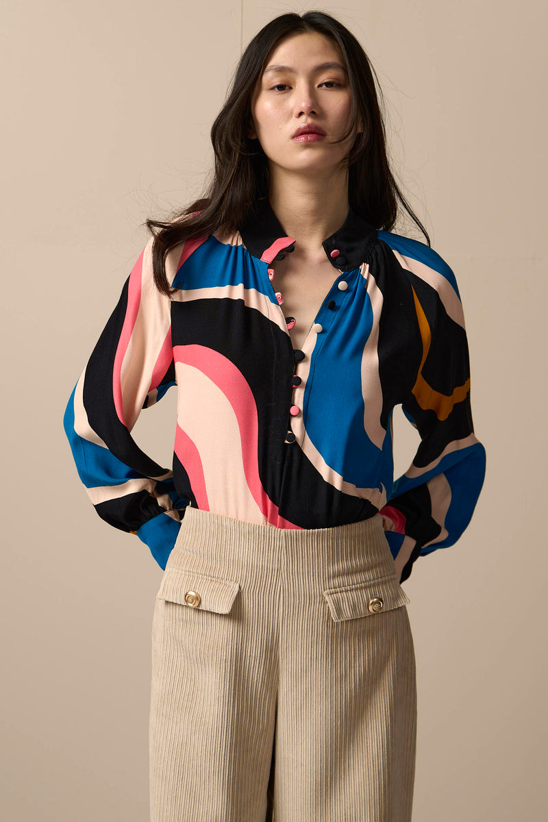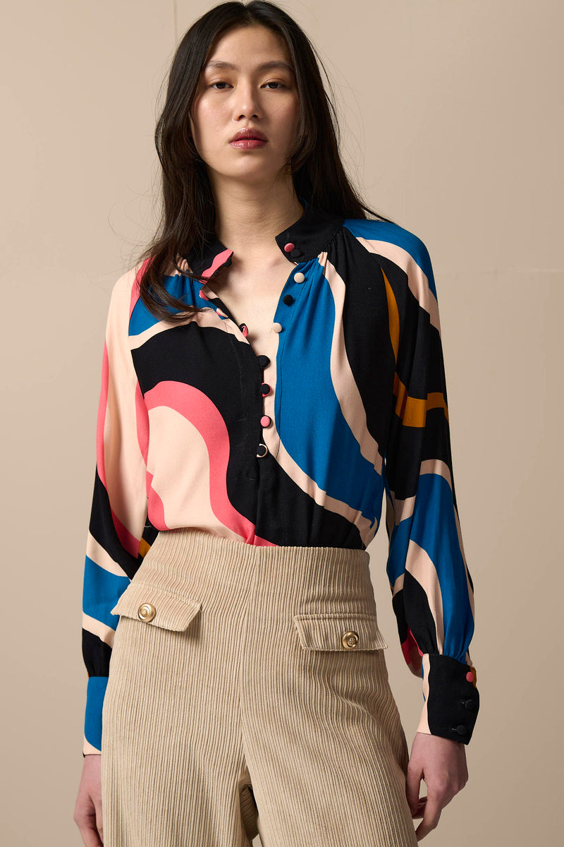 The Piaff Top is a timeless blend of elegance and modern flair. Featuring beautiful button detailing, puff sleeves, and high buttoned cuffs, it adds a touch of sophistication to any outfit.