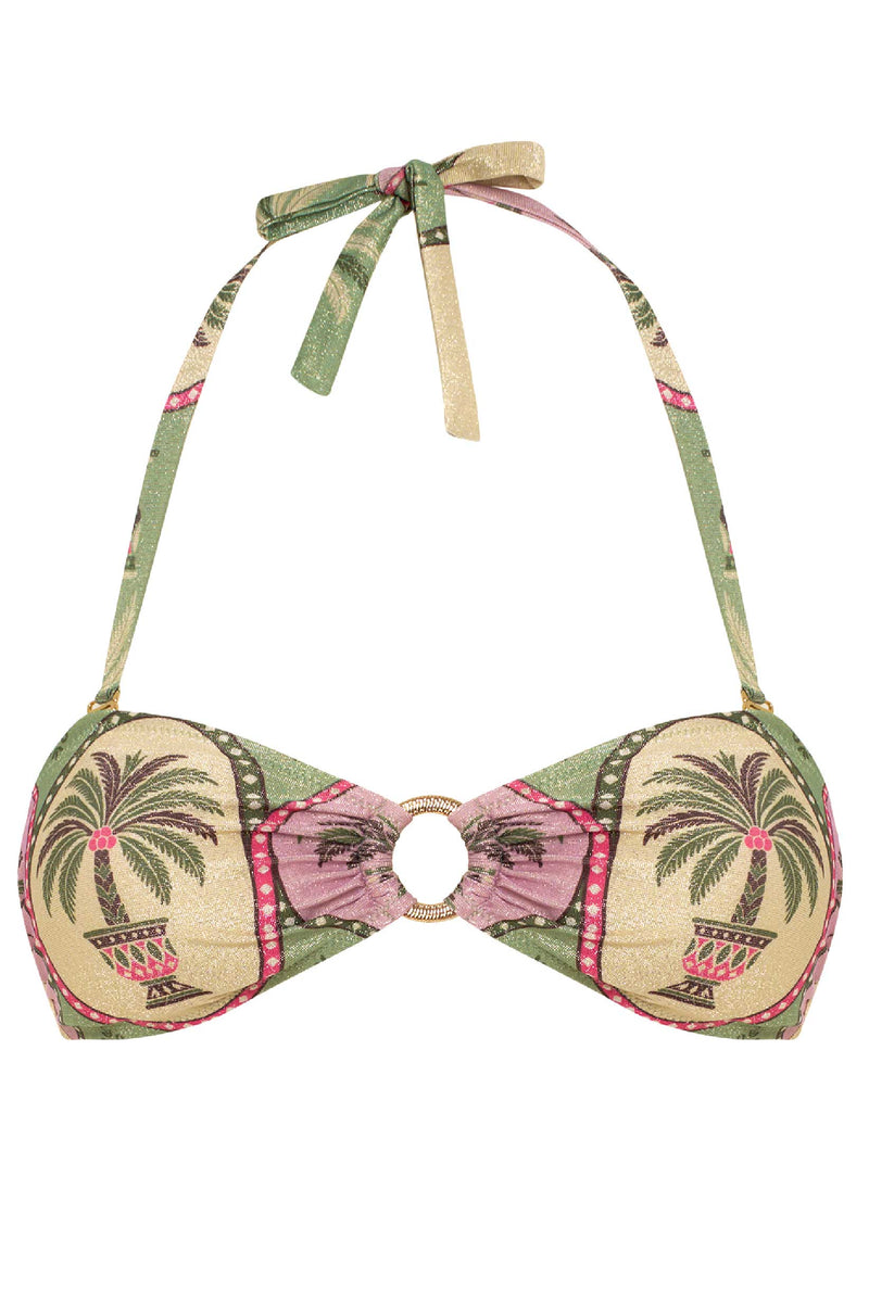 The Palma Alba Bikini Top is a strapless bikini top designed with removable padding and detachable straps for versatile wear. Featuring adjustable back ties and crafted from a beautiful Italian fabric with subtle lurex woven throughout, it catches the light effortlessly under the sun.