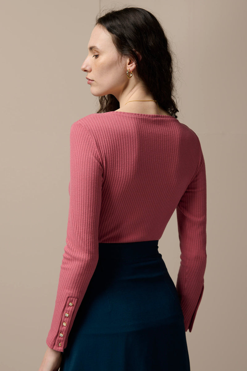 The Akira Top features a striking square scoop neckline and elegant button-detailed cuffs. Crafted from wonderfully soft jersey, it's as comfortable as it is chic.