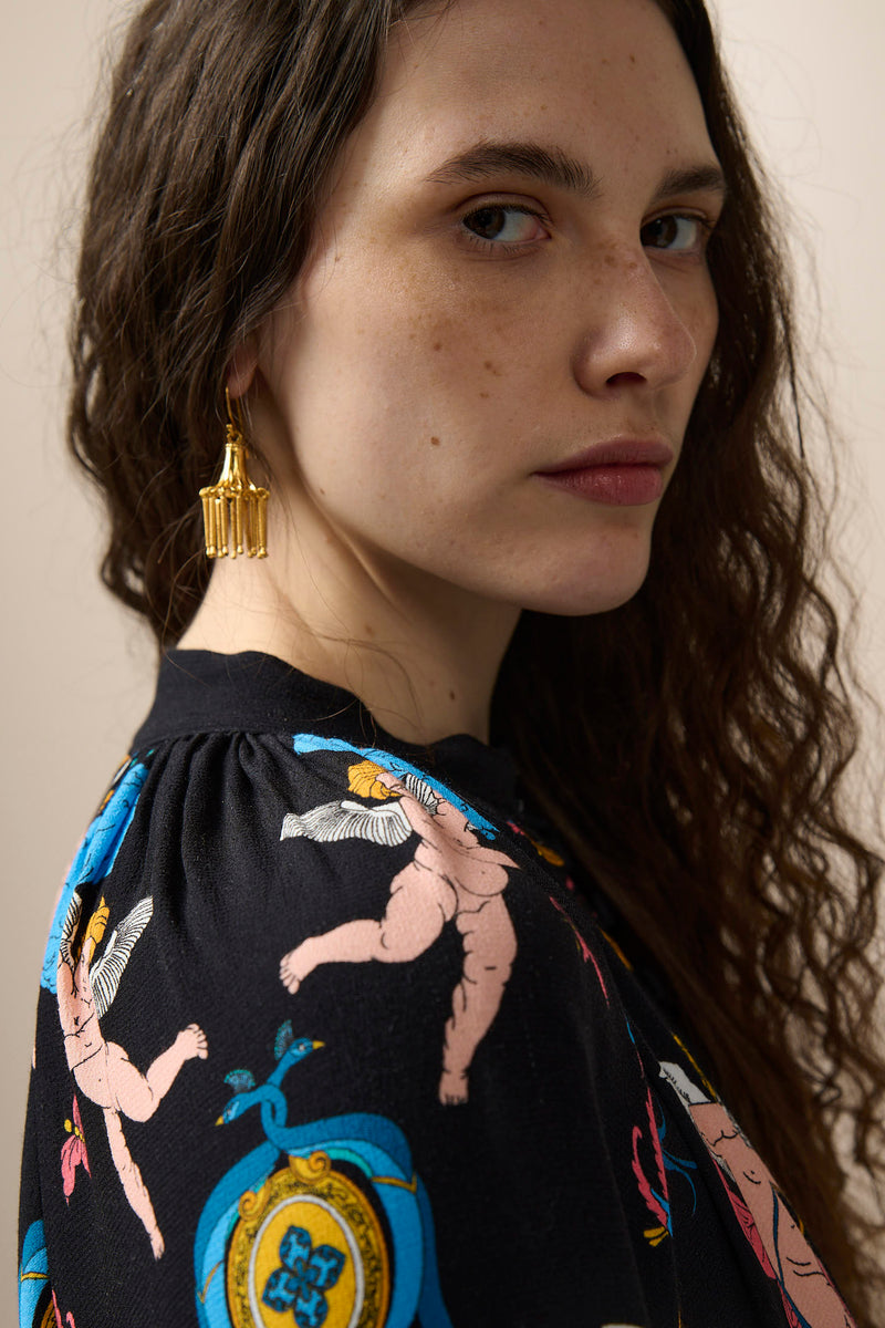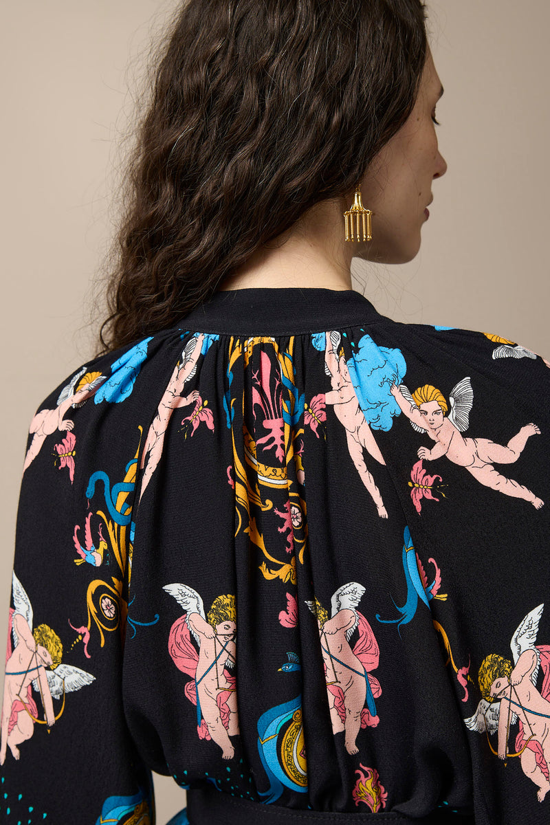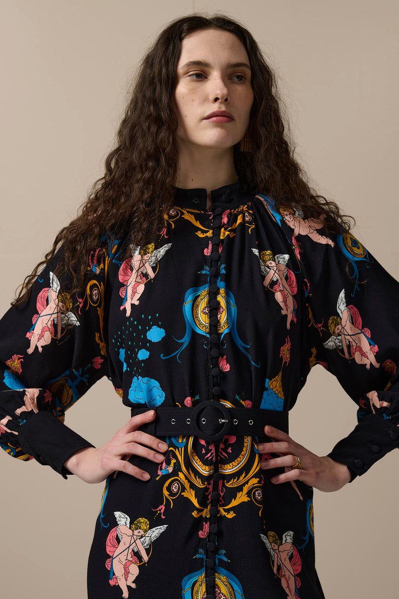 ABOUT THE PRINT: The Seraphina print, inspired by the highest order of angels - the seraphim - combines celestial radiance with Renaissance artistry. Drawing from the Renaissance's fascination with both the divine and the natural world, this print evokes the era's grand depictions of angels and the heavens.